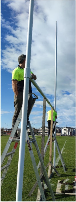 Our Aluminium Rugby Posts with a Hinge Base are very popular! They are easy to install and take down by two people. Our Posts come in a range of sizes, from 9m - 16m.